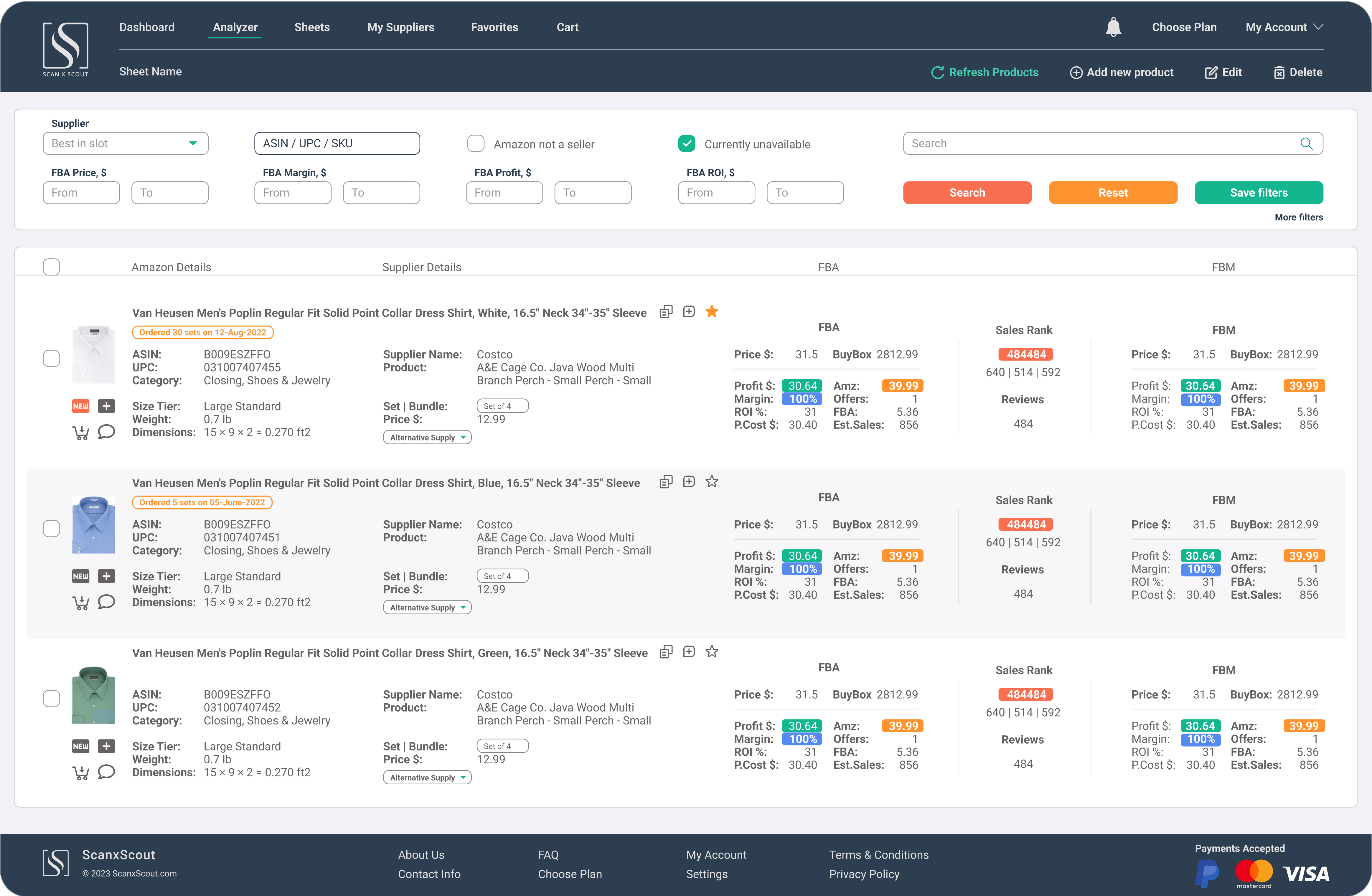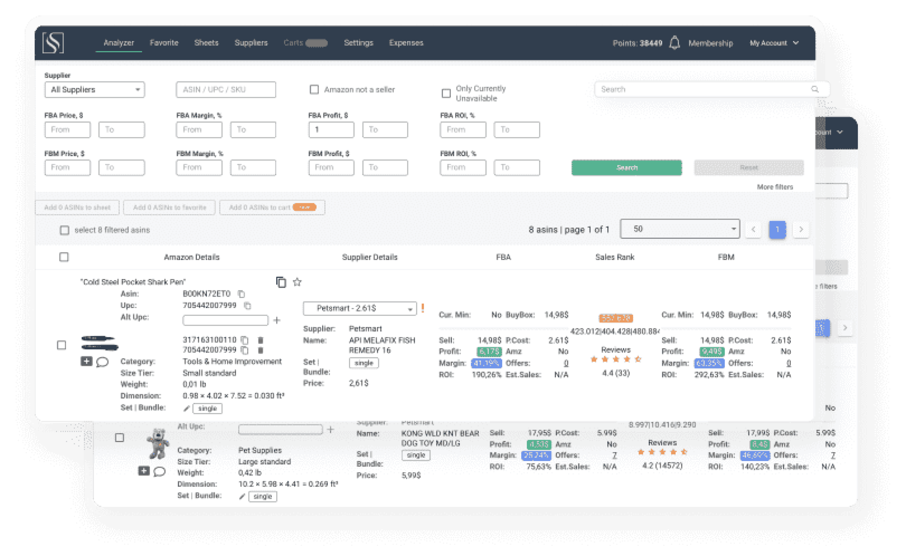 Filter results by characteristics to find only the most relevant products with the highest profit potential.