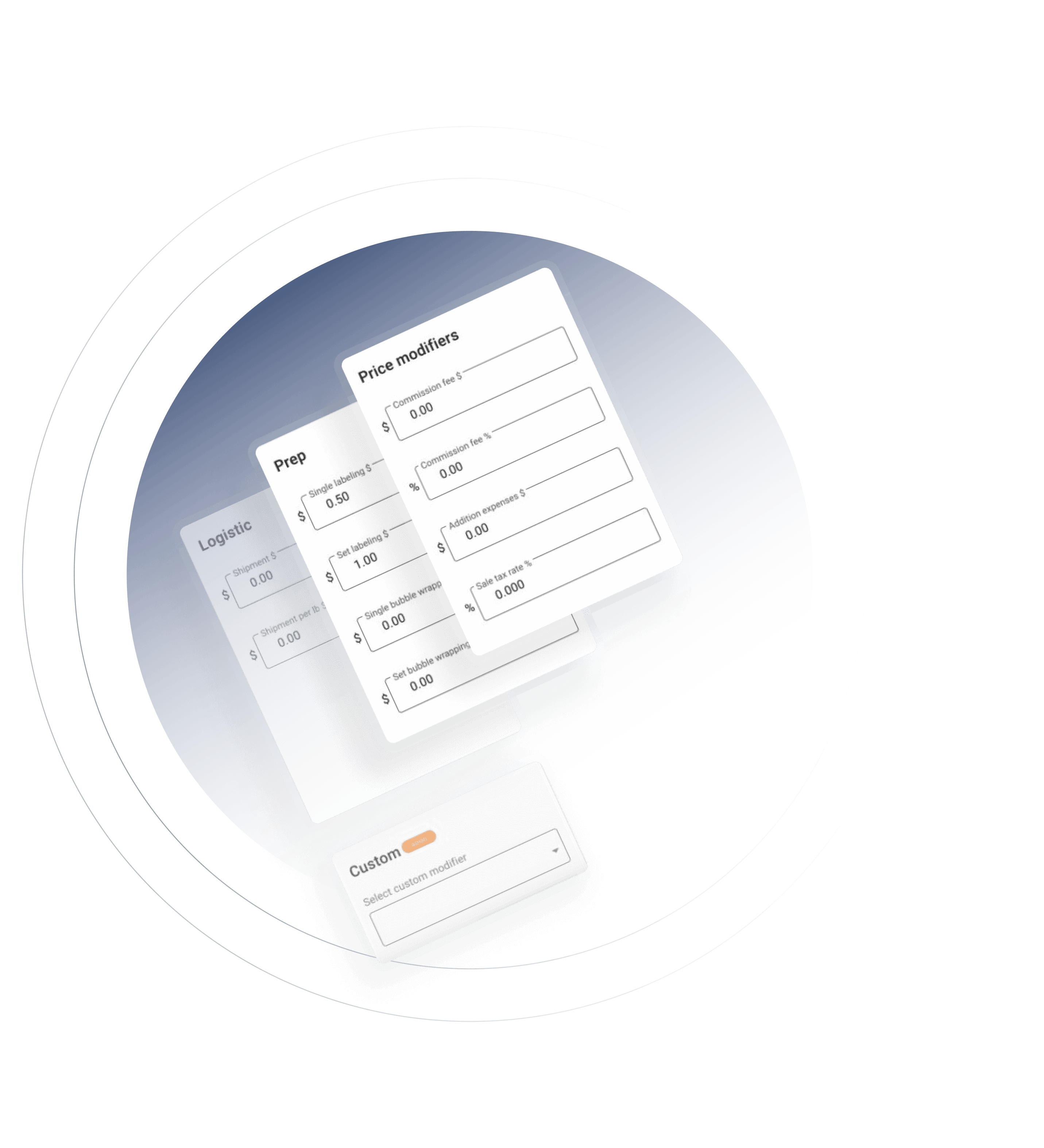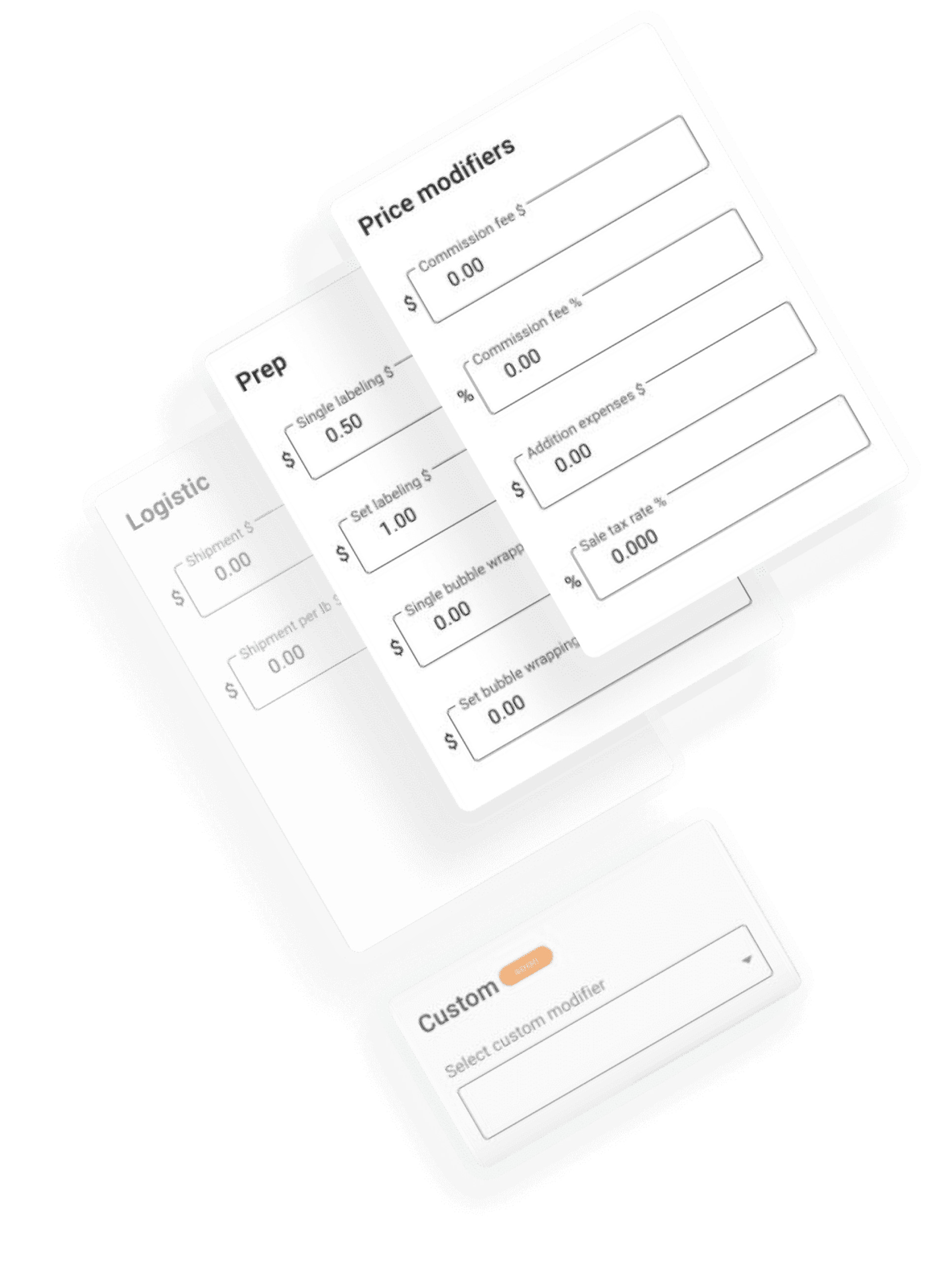 Upload your wholesale catalog(s) / product list(s). Enter relevant expenses and fees (i.e. shipping, packing, taxes).
