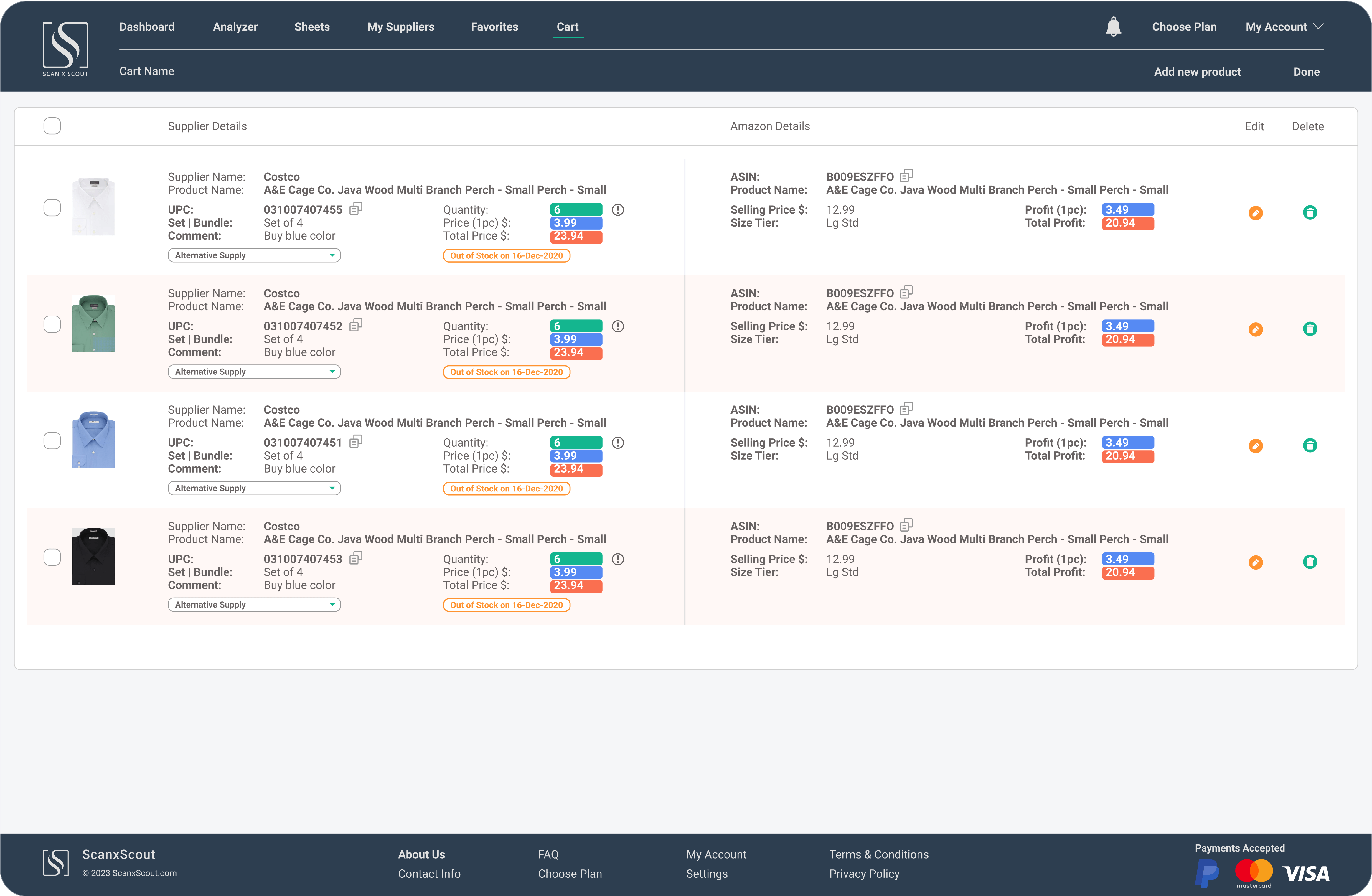 We have designed and developed a platform that connects Amazon’s product pages with suppliers lists. It allows users to manage their listings, estimate, calculate revenue and determine potential numbers to help sellers decide whether an item is worth selling.